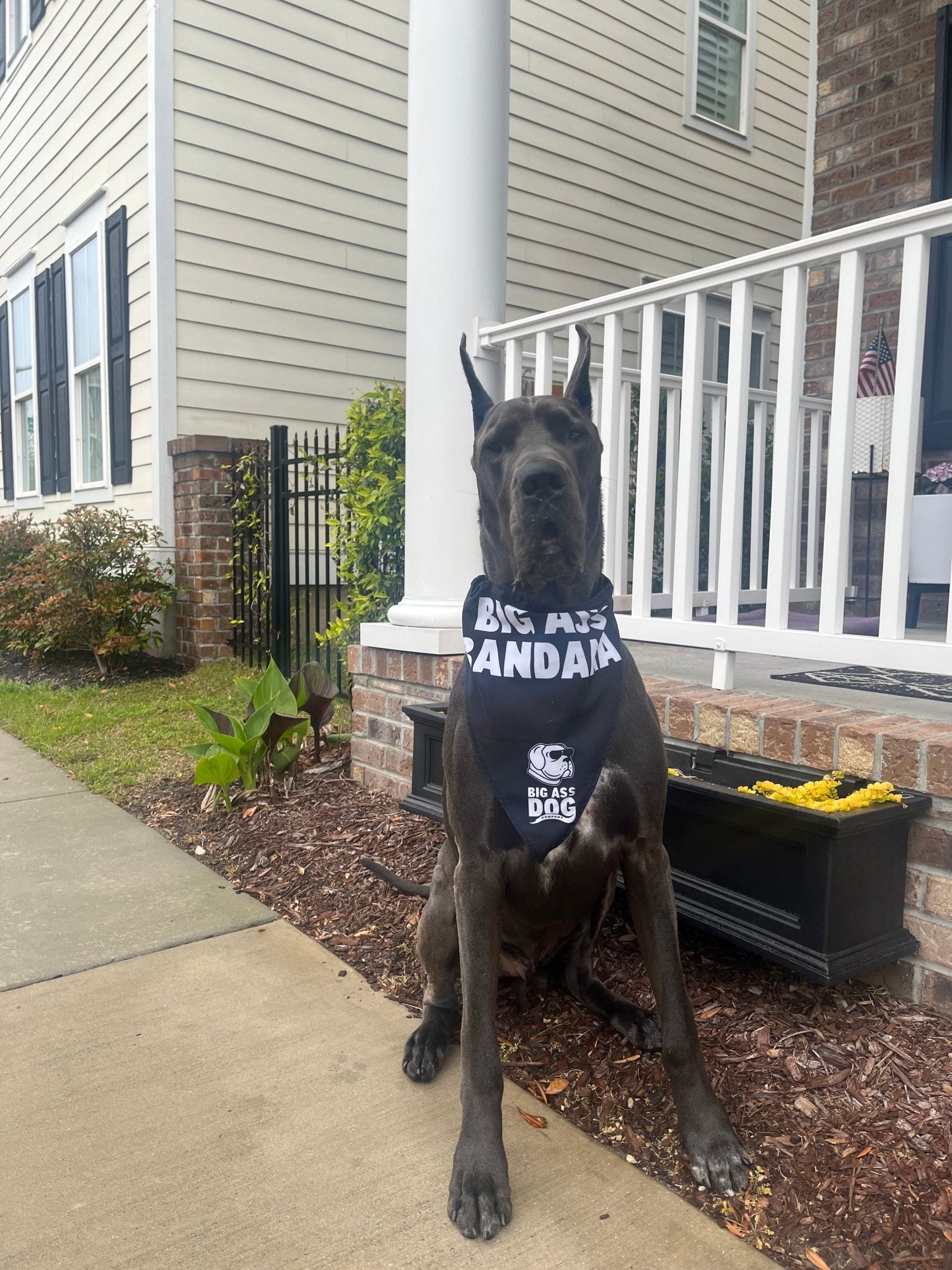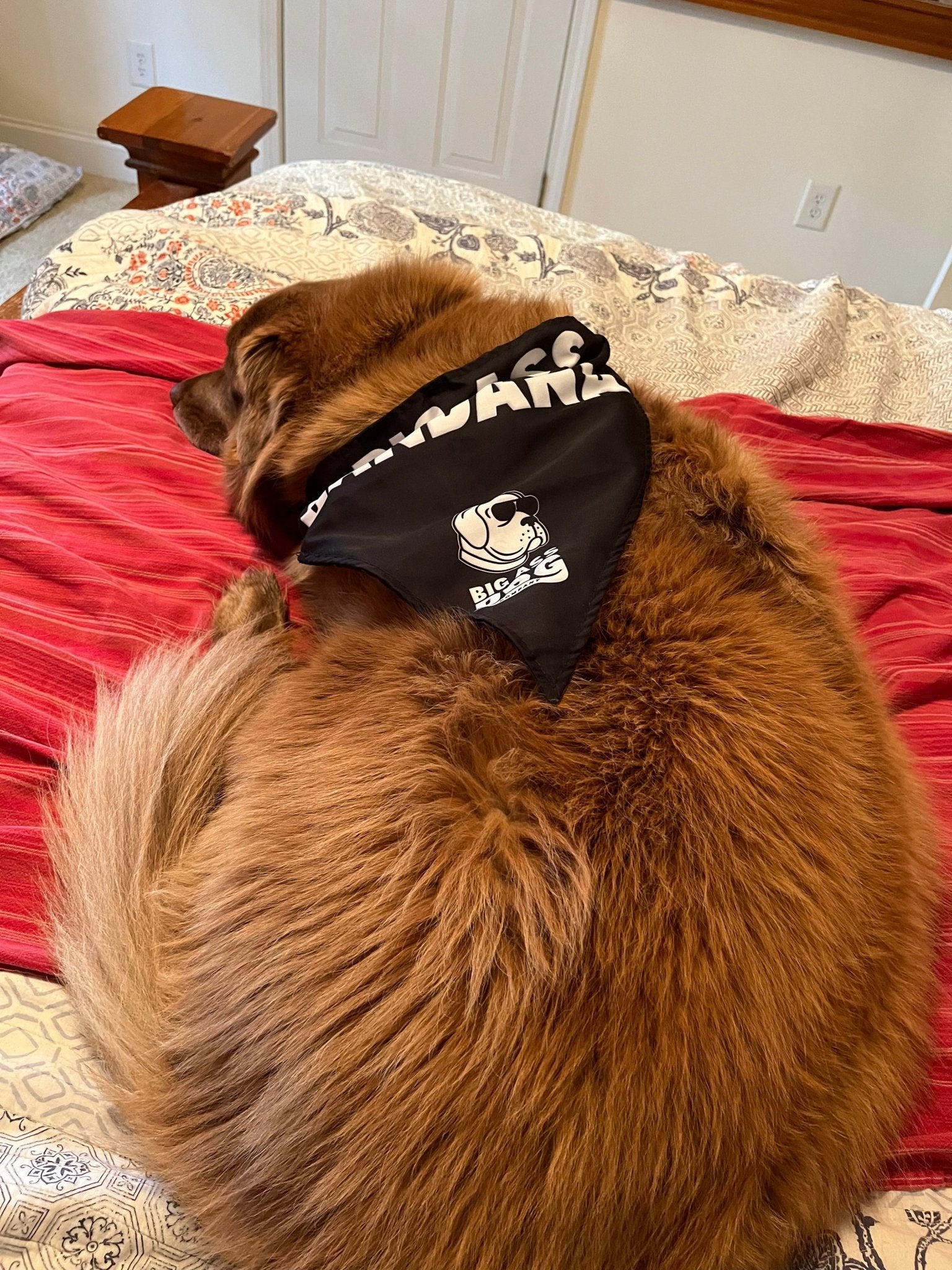 - Integrated Collar: No more struggling to fit a bandana over that big ass head. Our bandanas come with an integrated collar, designed specifically for big dogs.