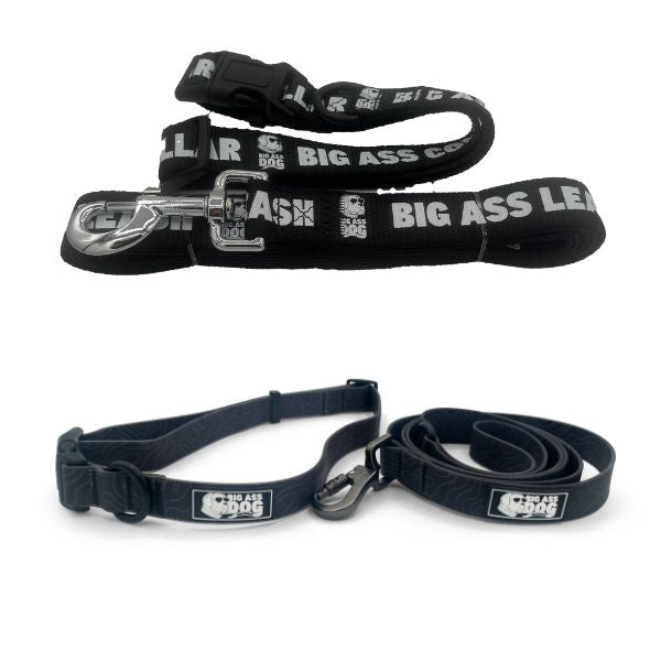 - Two Unique Combinations: Choose from a waterproof neoprene combo with a classy, topographical pattern print for super-adventurous pups. Or, show off your big ass dog’s attitude with our nylon webbing combo, proudly displaying the printed words “Big Ass Collar” and “Big Ass Leash”.